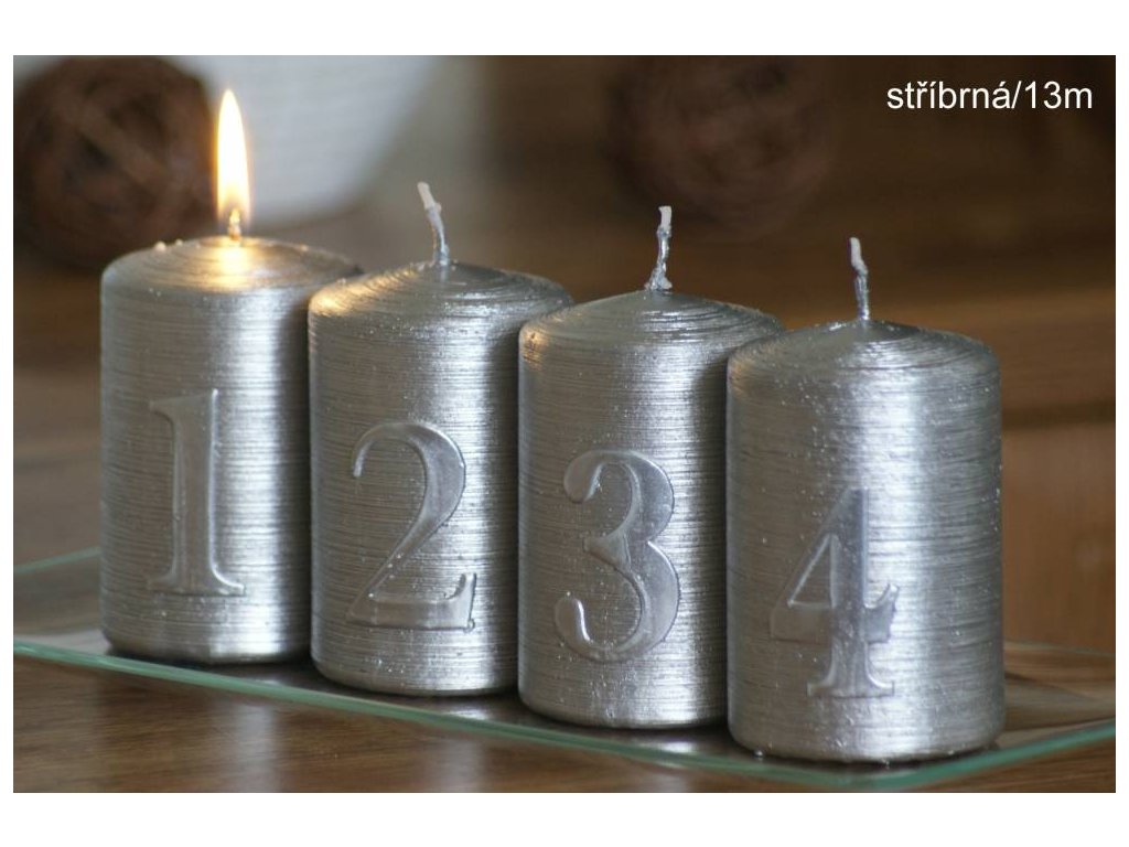 Adventní sada svíček s čísly "Alfa" Stříbrná - 4 ks