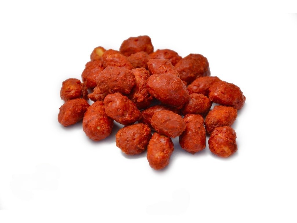 Složení: Arašídy 62,5%, cukr 36,33%, řepkový olej 0,94%, arabská guma E414 <1%, glukozový sirup 0,21%, barvivo E172 0,02%