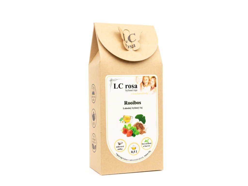 Bylinný čaj, zlatavé barvy a lehce nasládlé chuti. Směs bylin s rooibosem.