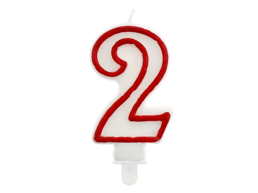 Dortová narozeninová svíčka - Číslice 2, bílo/červená - 1 ks