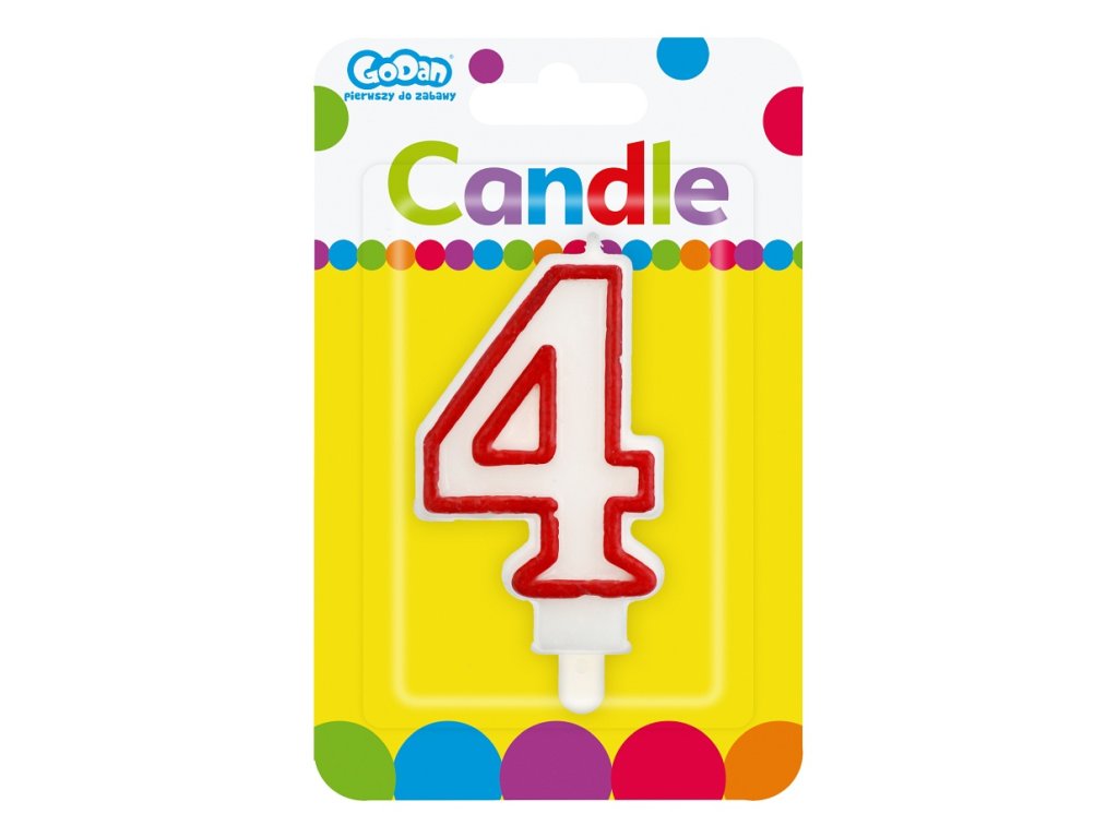 Dortová narozeninová svíčka - Číslice 4, bílo/červená - 1 ks