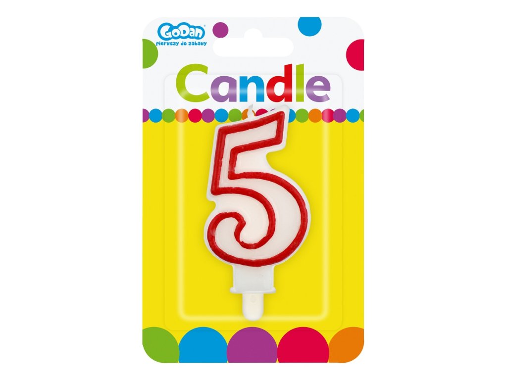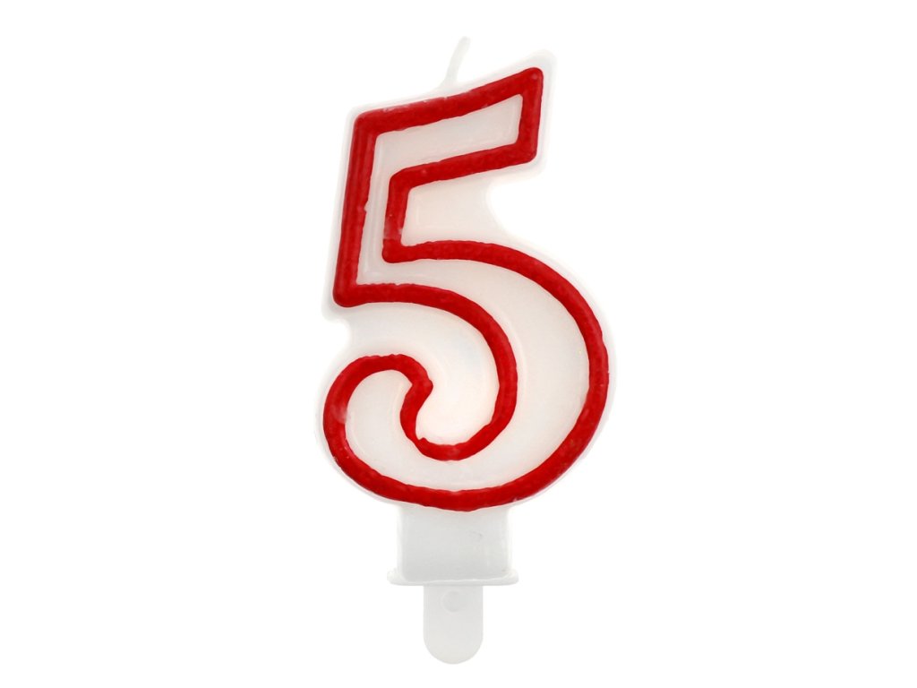 Dortová narozeninová svíčka - Číslice 5, bílo/červená - 1 ks