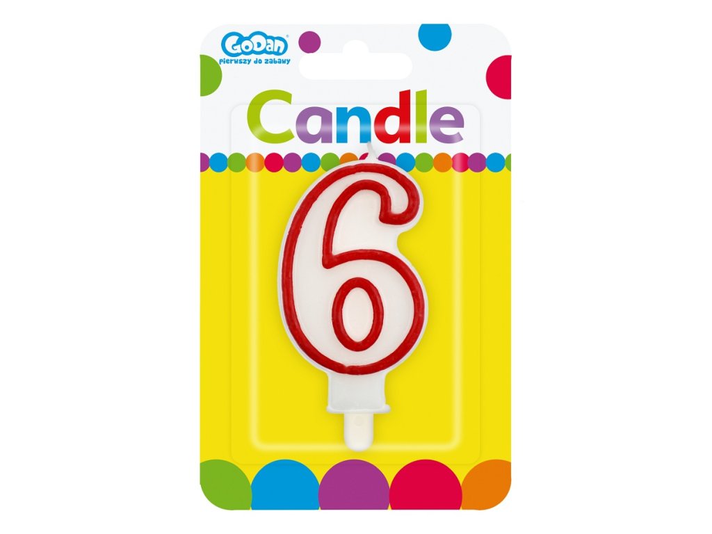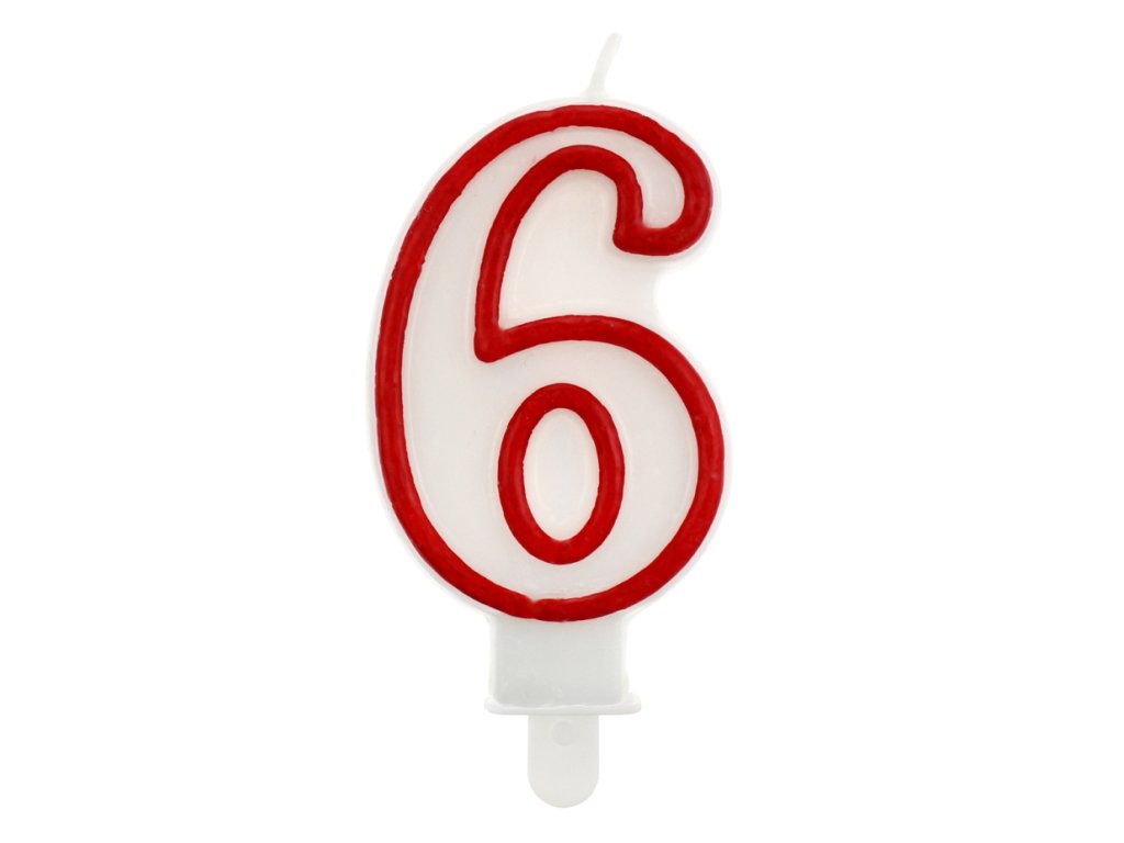 Dortová narozeninová svíčka - Číslice 6, bílo/červená - 1 ks