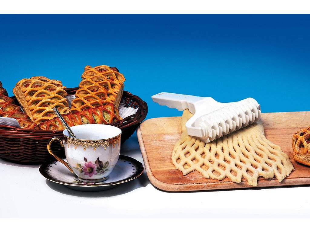 Rozválíme plát těsta o síle cca 4- 5 mm a nakrojíme jeden plát širší a jeden užší. Na širší plát vložíme náplň (marmeláda, špenát apod.), druhý pruh přejedeme válečkem, kterým těsto pravidelně "načárkujeme". Takto upravené těsto zlehka roztáhneme do stran a překryjeme náplň. Kuchyňskou stěrkou upravíme šátečky( viz kat. 1190) a obě vrstvy spojíme.