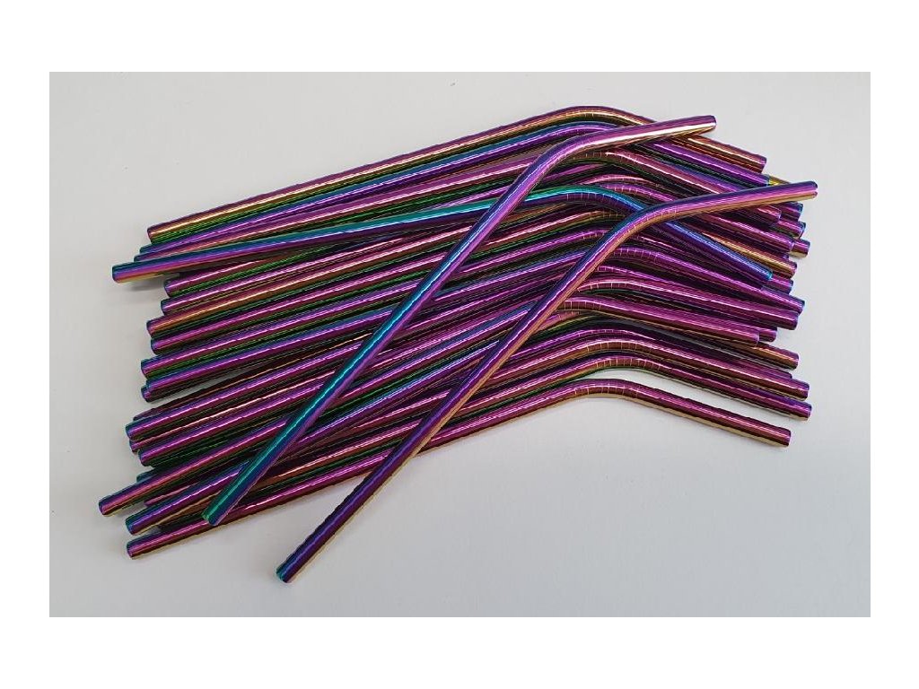 Nerezové brčko (slámka) - Duhové, Zahnuté 1 ks