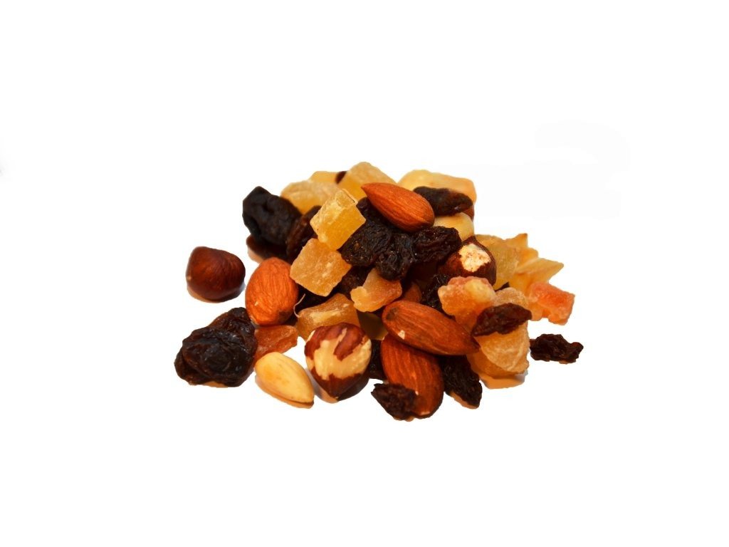 Složení: ananas, rozinky, papaya, lísková jádra, jádra mandlí, slunečnicový olej, cukr, konzervant : SO2,