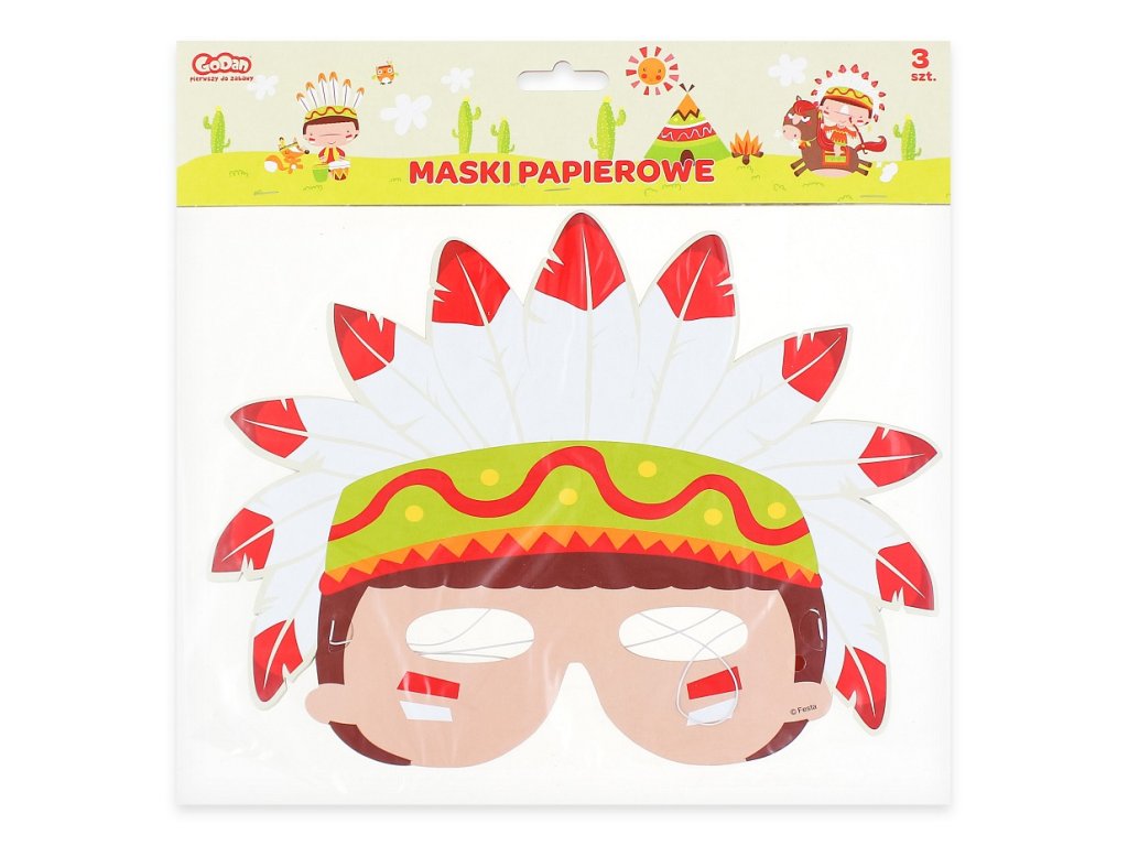 Papírové masky na tvář " Indiánská párty " 3 kusy. Velikost 26,4 x 20 cm